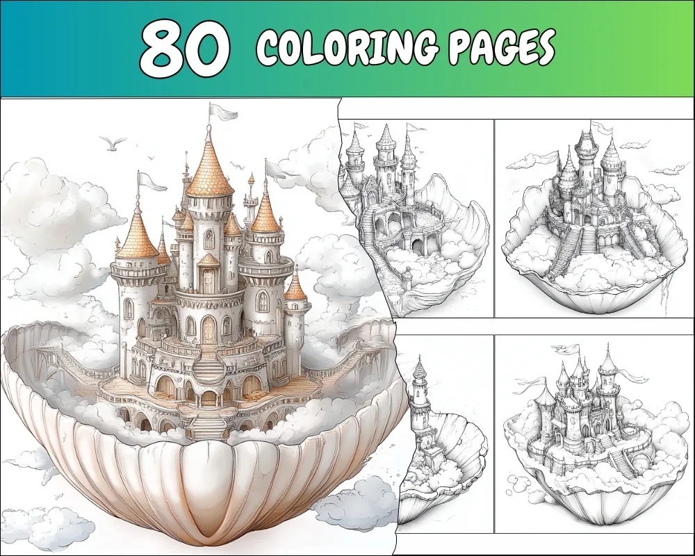 Castle in the Clouds: A Seashell Dream Coloring Adventure