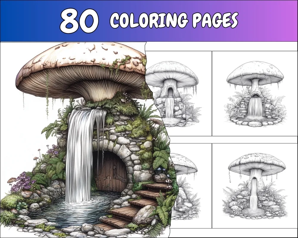 Step into a scented dream with “Dreamy Perfume Shop in a Mushroom”, a delightful collection of 80 magical coloring pages. Nestled under a giant mushroom cap, this tiny shop is filled with elegant glass bottles, sparkling vials, and floral scents drifting gently through the air. Every shelf holds a story — from forest blossoms to stardust elixirs — waiting to be brought to life with your colors.